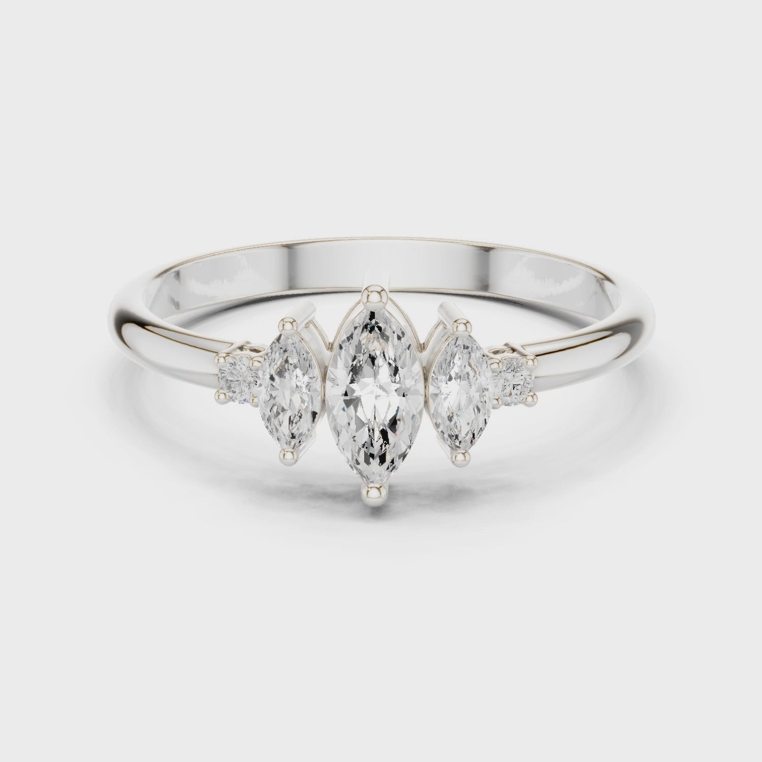 Stones: Marquise Diamonds, 1 × 6.0 × 3.0 mm (≈0.18 ct) + 2 × 4.0 × 2.0 mm (≈0.05 ct each) + Round Brilliant Diamonds, 2 × 1.50 mm (≈0.015 ct each) → Total ≈0.31 ct (grade per selection; lab-grown standard, natural on request)