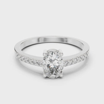Center stone: Diamond (natural or lab-grown per selection), Oval, approx. 7.20 × 5.10 mm (~0.70 ct), qty 1