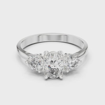 Center stone: Oval Brilliant ~7.0×5.0 mm, approx. 0.66 ct, 1 pc