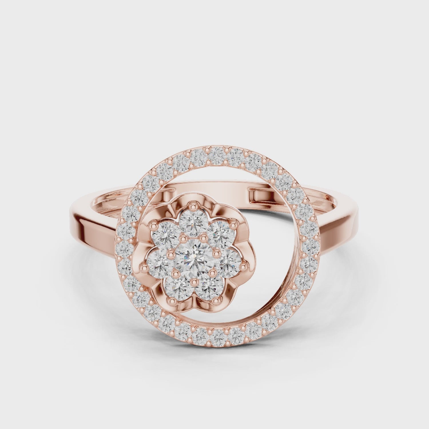 From MUUR Fine, this floral-inspired double halo ring balances vintage romance with modern precision. A central round brilliant (~2.30 mm, ~0.05 ct) is framed by a petal cluster of seven 1.60 mm rounds, finished with a luminous outer halo of 1.00 mm pavé. The two-tier head is engineered in 14K yellow gold with petite bead prongs and protective collet cups that sit low and secure on the finger. Slightly tapered shoulders lead to a streamlined half-round band for everyday comfort, while an open under-gallery invites light for extra scintillation. Made to order with ethically sourced diamonds or lab options per your selection, the design offers striking sparkle in a graceful, wearable profile—perfect as a distinctive engagement ring or right-hand statement.